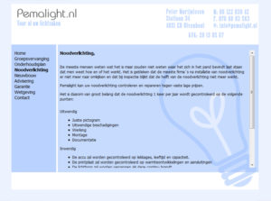 PemaLight is een professioneel bedrijf dat uw verlichtingszorg uit handen neemt en uw daarvoor een betrouwbare en werkende verlichtingsinstallatie levert, tegen een betaalbare prijs. Deze website is uit 2007.